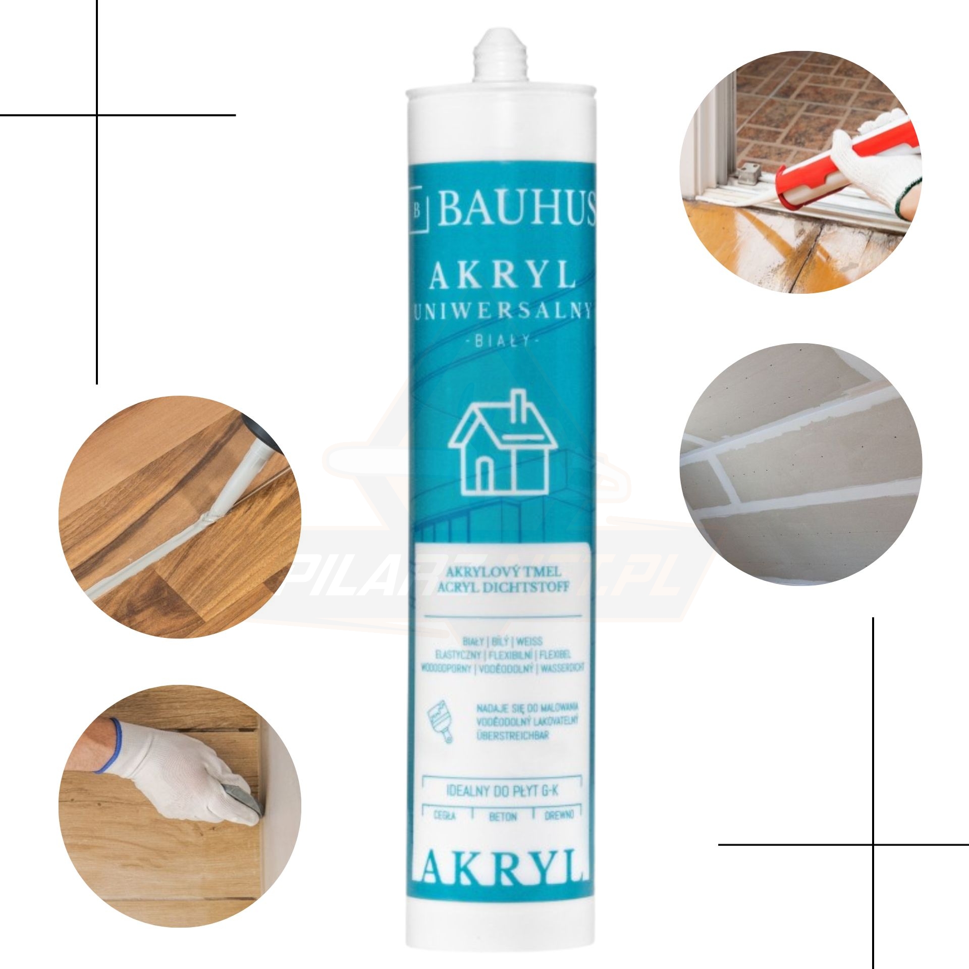 Strona główna » BAUHUS » Kleje, silikony itp. » Akryl uniwersalny Bauhus 019 biały 310 ml