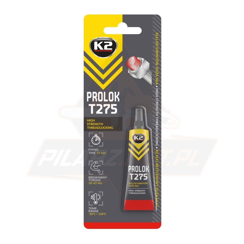 PROLOK T275 – K2 KLEJ BEZTLENOWY DUŻA SIŁA® jest przeznaczony do zabezpieczenia gwintów przed odkręcaniem narażonych na silne wibracje i drgania. Chroni przed korozją, uszczelnia i blokuje połączenia. Zastępuje standardowe zabezpieczenia np.: podkładki. Nadaje się do stosowania w złączach ze wszystkich rodzajów metali.