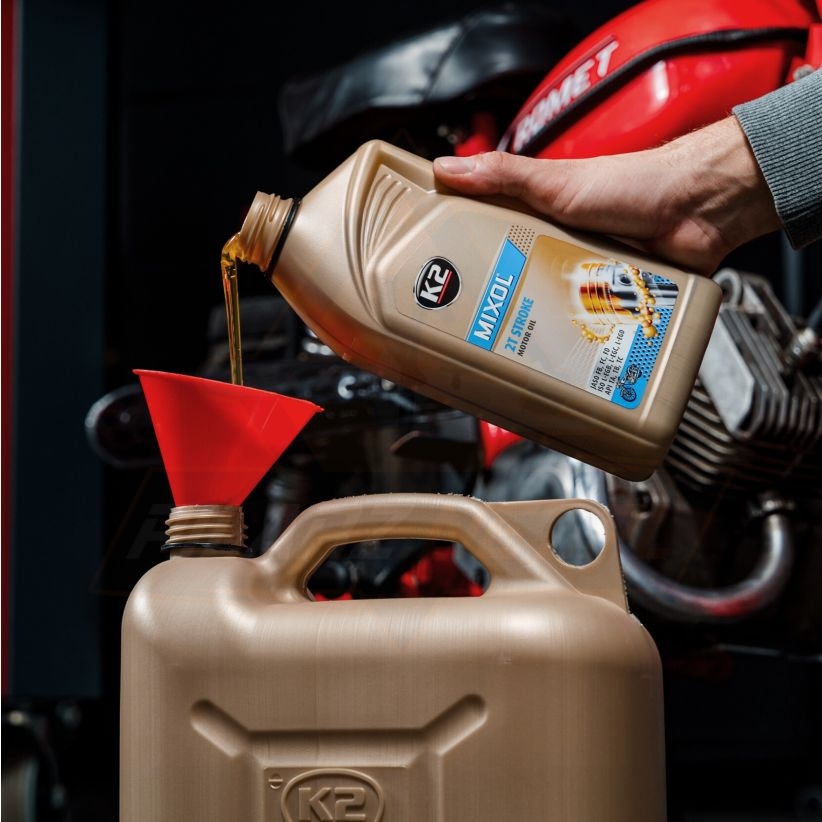 Olej do sporządzania mieszanki w silnikach dwusuwowych, chłodzonych powietrzem i wodą, chroni silnik przed zużyciem, ogranicza powstawanie nagarów i osadów.