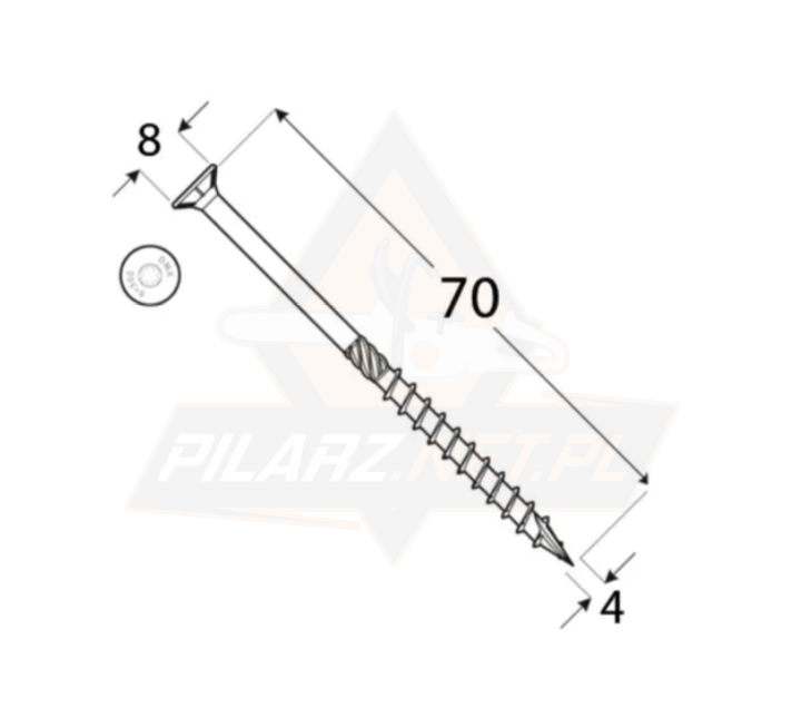 • Nacięcie na początku gwintu ułatwia rozpoczęcie wkręcania oraz niweluje pękanie drzewa.